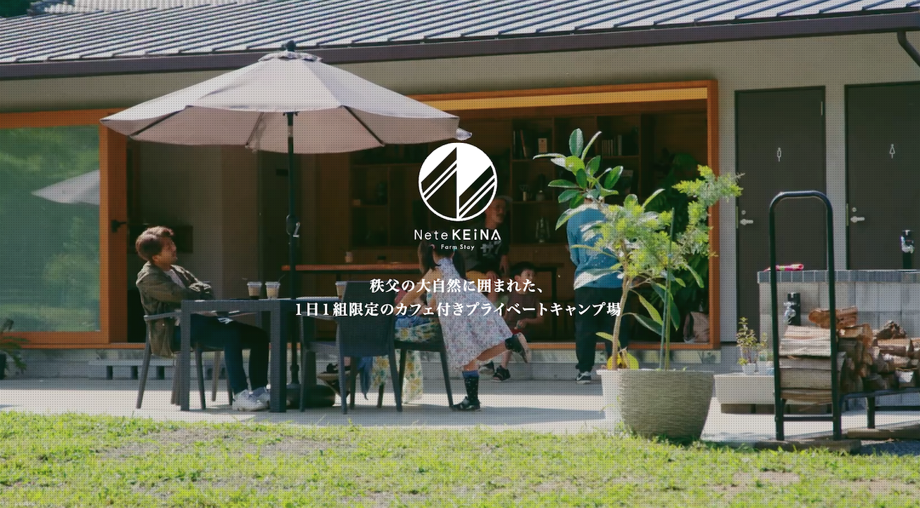 『KEiNA CHICHIBU』は、1日1組限定の完全貸切カフェ付きプライベートキャンプ場。敷地内の畑で栽培する自家製有機野菜を使った料理の提供や、収獲体験イベントを開催しています。